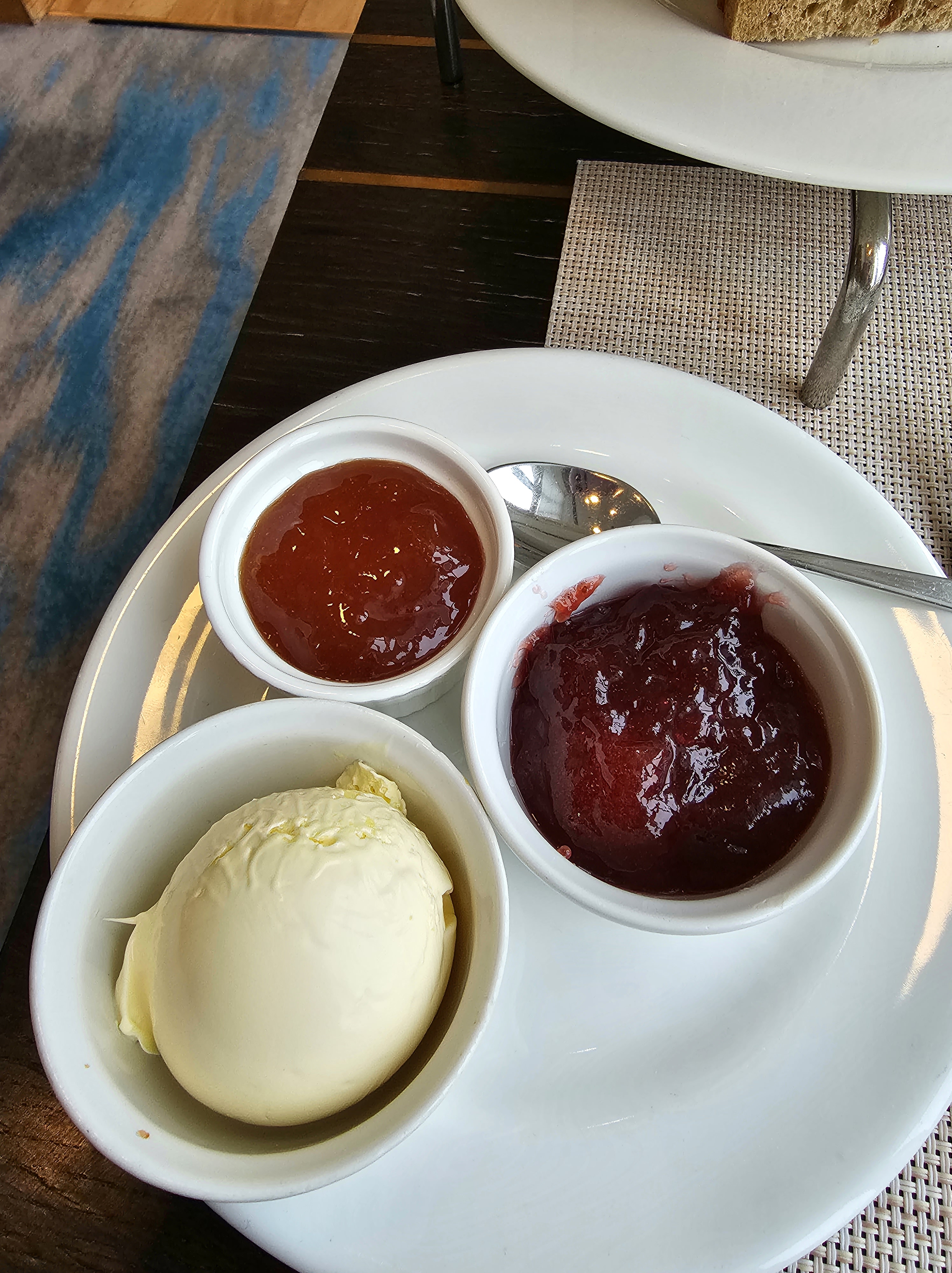 The afternoon tea comes as a set which include English scones with jam and clotted cream, and a mixture of sweet and savory items.